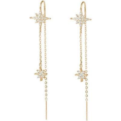 SmallRig Sterling Silver Star Dangle Earrings, CZ Threader Tassel Design for Women & Teens