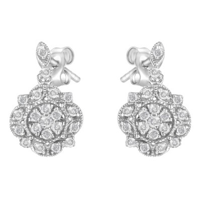 Haus of Brilliance Silver 1/2 Cttw Diamond Dangle Miligrain Earring