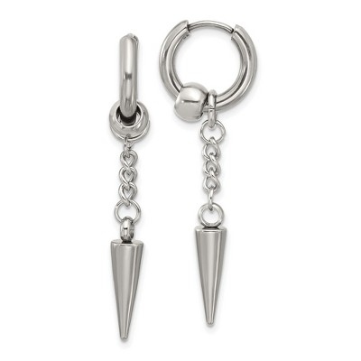 Chisel Stainless Steel Polished Spike Dangle Hinged Hoop Earrings
