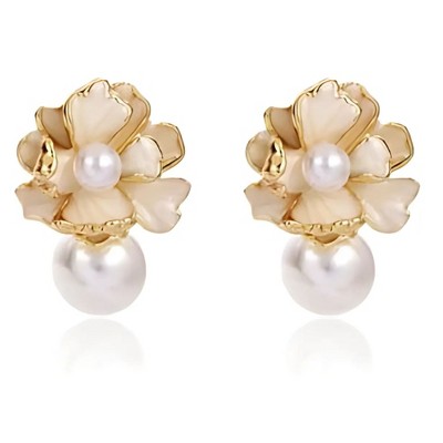 Pearl Blosson Earrings for Women Gold Plated Mother of Pearl Flowering Stud Dangle Ginger Lyne