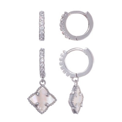 Adornia Silver 2-PIECE White Mother of Pearl Huggie Earring HOLIDAY Set