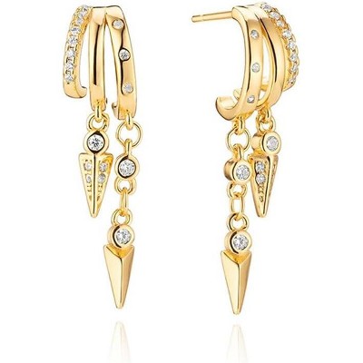 14K Gold Plated Earring Set: Dainty Studs, Huggie Hoops & Dangle Earrings for Stacking