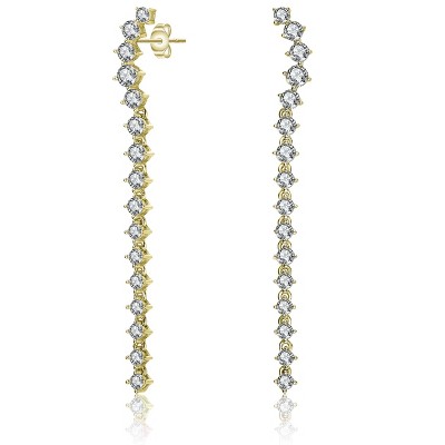 Guili Sterling Silver 14K Yellow Gold Plated Earrings with White Freshwater Pearl, Linear Dangle Drop Design on Elegant Cable Chain