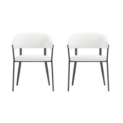 Manhattan Comfort Set of 2 Gracie Vegan Leather Metal Dining Chair White/Black