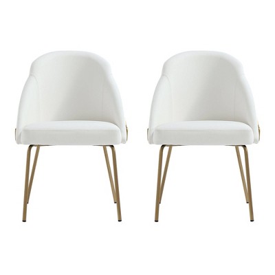 Manhattan Comfort Set of 2 Gracie Vegan Leather Metal Dining Chair White/Gold