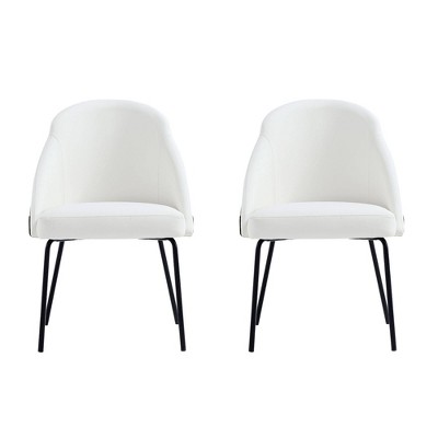 Manhattan Comfort Set of 2 Kirsten Vegan Leather Upholstered Metal Dining Chair White