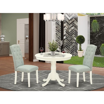HomeStock Modern 3 Piece Round Dining Table Set Linen White