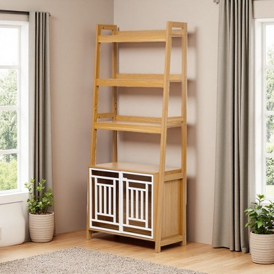 4-Tier Solid Bamboo Wood A-Frame Ladder Bookshelf with Open Shelves for Living Room, Office, Home Decor
