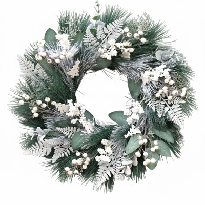 Itopfox 24 Inch Artificial Winter Wreath for Front Door with White Berries Green Eucalyptus Pine Needles 1 Piece for Outdoor Home Decor
