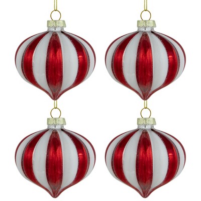 Northlight Glittered Candy Cane Onion Glass Christmas Ornaments - 3.25" - Red and White - 4ct