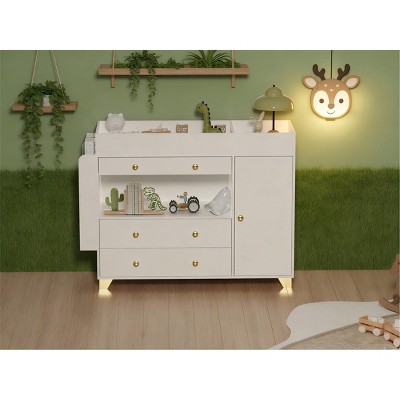 white dresser with glass knobs