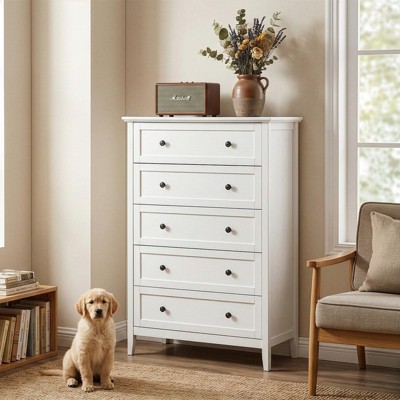 white dresser with glass knobs