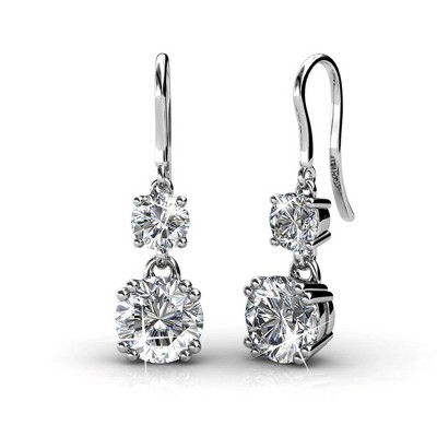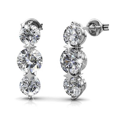 Cate & Chloe Eliana Drop Earrings 18K White Gold Plated with Swarovski Crystals Round Drop Design for Women 1 Pair