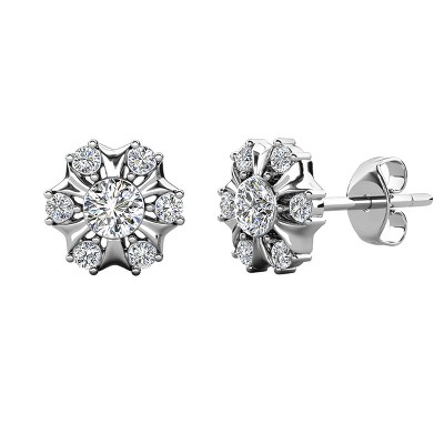 Cate & Chloe Poppy 18K White Gold Plated Stud Earrings with Simulated Diamond Crystals Elegant Halo Design Gift for Women