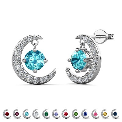 Cate & Chloe Luna Birthstone 18k White Gold Plated Stud Earrings with Swarovski Crystals Gift for Women