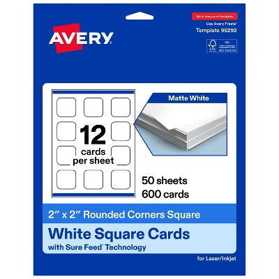 Avery Matte White Square Cards, 2" x 2" Square Rounded Corners