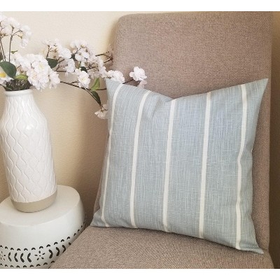 HomeRoots 14" X 20" Blue and White Striped Cotton Throw Pillow With Fringe