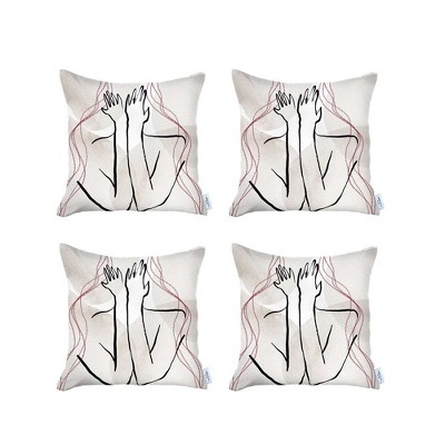 HomeRoots Set of Four 18" Black And White Abstract Throw Pillow Covers
