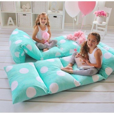 Butterfly Craze Butterfly Craze Floor Pillow Case, Mattress Bed Lounger Cover, Polka Aqua, Queen Size - for Kids & Adults