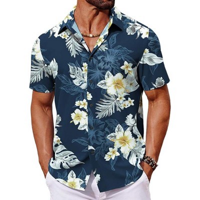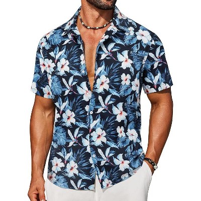COOFANDY Mens Hawaiian Shirt Short Sleeve Button Down Floral Aloha Shirts Tropical Vacation Beach Shirts