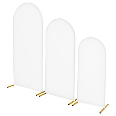VEVOR Arch Backdrop Stand, Set of 2, 7.2 ft and 6 ft, Stable Structure, Easy Assembly, Gold Metal Arch Backdrop Stand with Cover, White & Gold