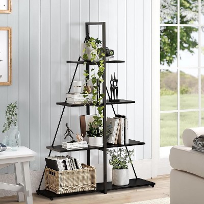 - black bookshelves