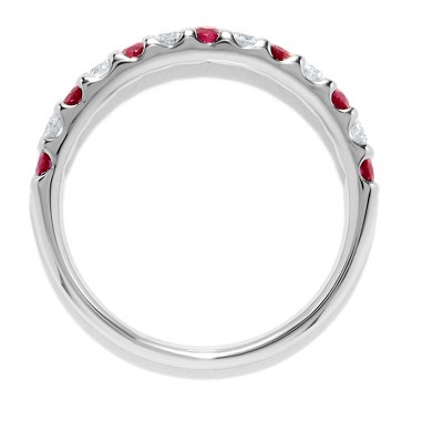H.J. Namdar 0.57 ct tw Prong Set Alternating Round Diamond and Ruby Band Ring 14K White Gold Natural Rubies and Diamonds Size 6