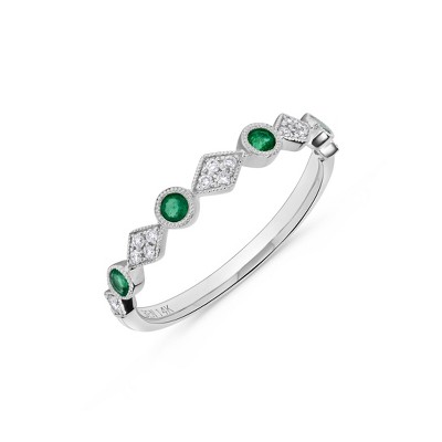 H.J. Namdar 0.19 ct tw Prong & Bezel Set Diamond And Emerald Stack Ring 14K White Gold Natural Emeralds and Diamonds Size 6