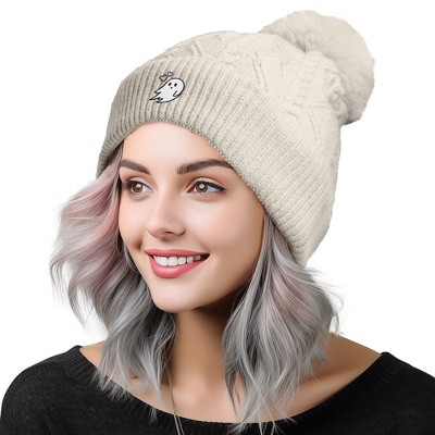 Dalix Ghost Embroidered Beanie Hat Knit Cap Cold Weather Womens