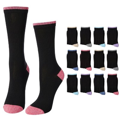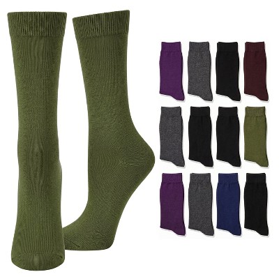 Tipi Toe Women's 12-Pairs Lightweight Solid Dark Colored Crew Socks