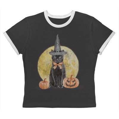 Social Collective Women Kitty Witch Short Sleeve Graphic Cotton Retro Vintage Ranger Baby Tee