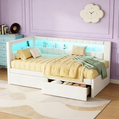 - white platform beds