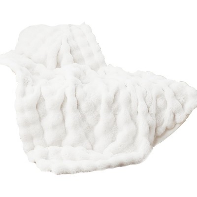 Aoibox Faux Fur Throw Blanket for Couch, Cozy Warm Plush Striped Blanket for Sofa Bedroom Living Room in Cream White