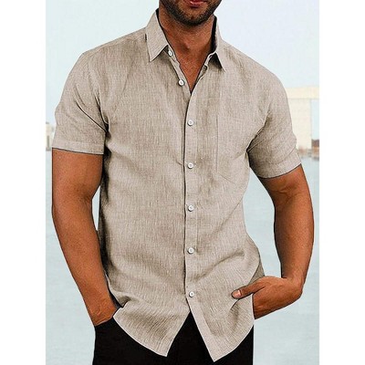 Mens Button Down Linen Shirts Casual Long Sleeve Dress Shirts Regular Fit Cotton