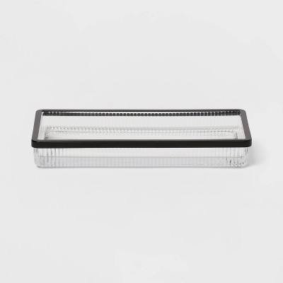 Ribbed Glass Tray Black - Threshold™: Metal & Glass Vanity Organizer, Easy to Clean
