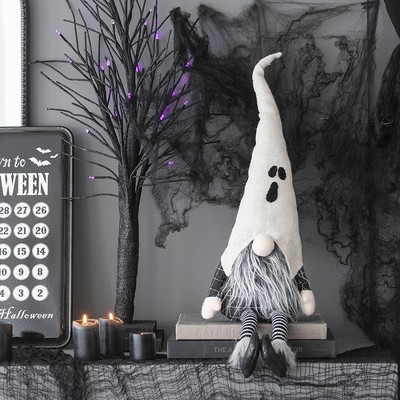 Storied Home Stoneware Gnome Bell with Gold Electroplating, White and Gold
