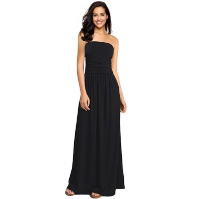 Women Strapless Floral Print Bohemian Boho Maxi Dress Casual Off Shoulder Beach Party Dress with Pockets