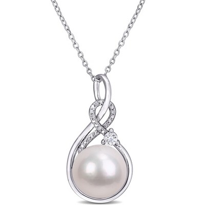 EVERLY JEWELRY | Sterling Silver 11-12mm Cultured Freshwater Pearl, 1/6 CT TGW Created White Sapphire and Diamond-Accent Twist Pendant with Chain, 18"