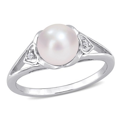 EVERLY JEWELRY |Sterling Silver 0.02 CT TW Diamond 7 - 7.5 MM White Freshwater Cultured Pearl Fashion Ring