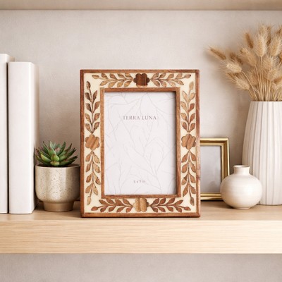 Boho Wood Picture Frame with Resin Inlay, Glass Front, Decorative Home Decor for Bedroom, Living Room & Office