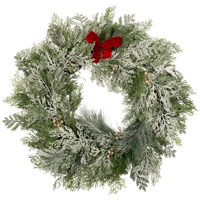 Northlight Pre-Lit Battery Operated Mixed Pine Christmas Snowflake Wreath - 32" - Warm White LED Lights