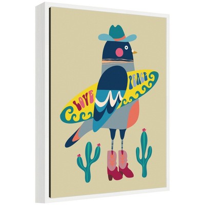 Kate and Laurel Surfer Pigeon Framed Canvas by Rachel Lee, 18x24, White