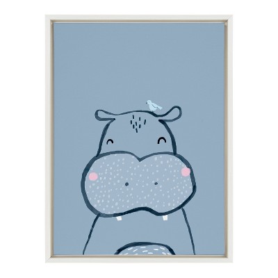 Kate and Laurel Sylvie Inky Hippo Framed Canvas by Lauradidthis, 18x24, White