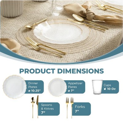 Posh Setting 140 Piece Transparent White And Gold Plastic Party Bundle - Luxe (20 Settings)