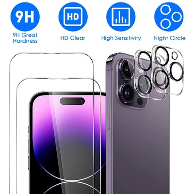 iMountek"2Pcs HD Clear Screen & Camera Lens Protectors for iPhone 12/13/14 Series, Full Coverage Tempered Glass"Transparent