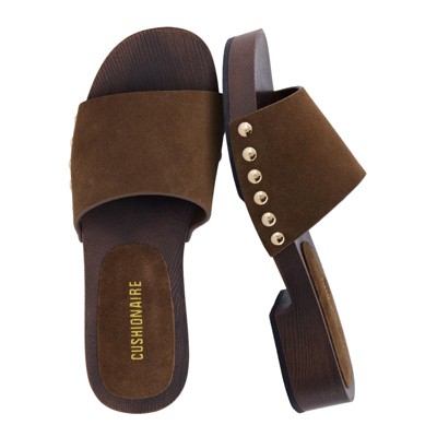 CUSHIONAIRE Timmi 100% Genuine Leather Suede Slides for Women, Slip On Low Heeled Dress Sandal with Studded Detail