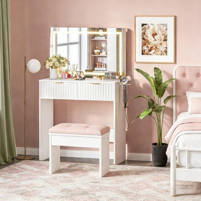 - white vanity with quartz top