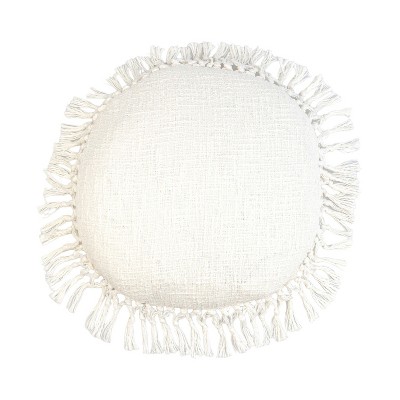 HomeRoots 18" X 18" White Round Cotton Throw Pillow with Fringe