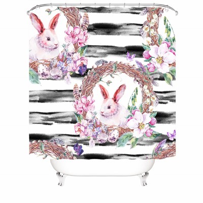 Black And White Striped Rabbit Shower Curtains for Bathroom Waterproof Fabric Bath Curtain Durable Soft Stylish Bathroom Decor 72x72 Inch