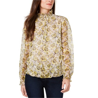 Vince Camuto Womens Smocked Floral Pullover Blouse